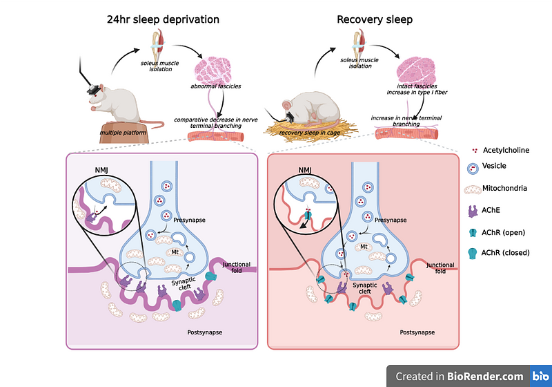 Synaptic kinetics of neuromuscular junction in sleep-wakefulness